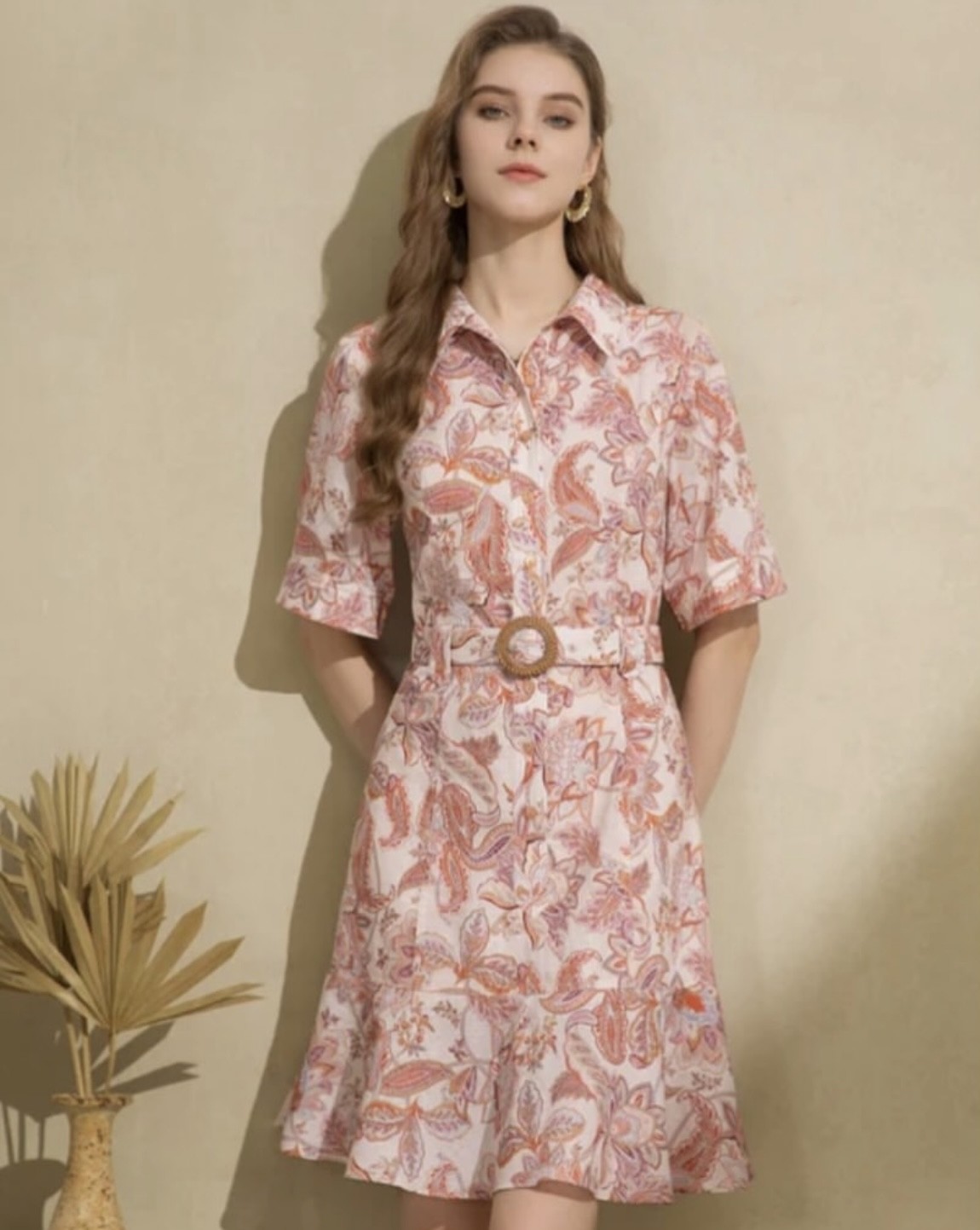 This stunning floral design dress is so beautifully made with a smart collar design and buttoned-down front. This is the perfect dress to wear in a corporate meeting to then transition to that dinner all in one.