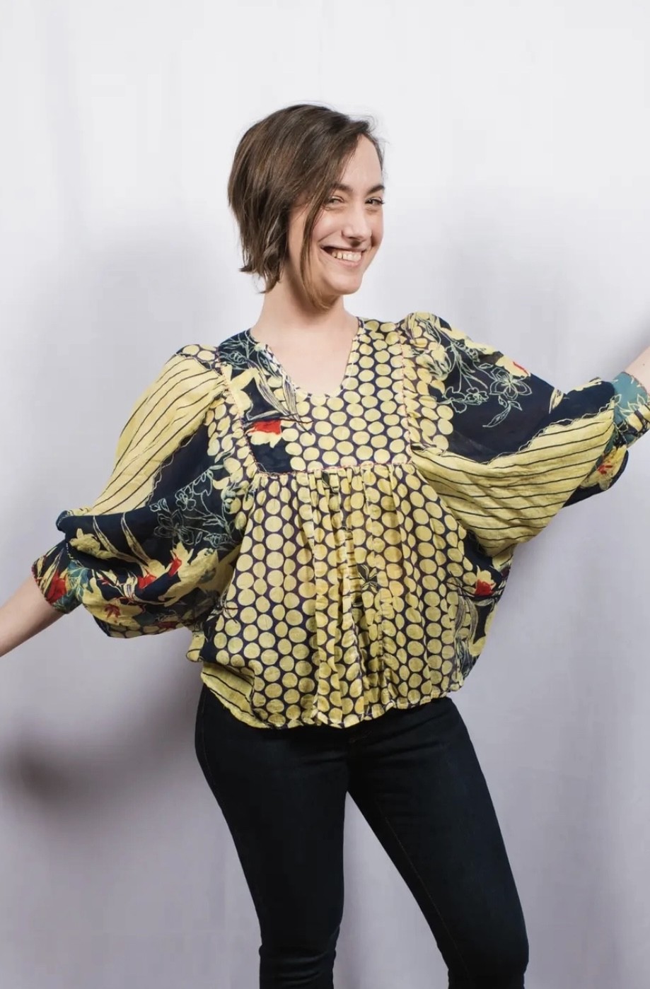 Kaiya Blouse Patterned – Yellow Teal