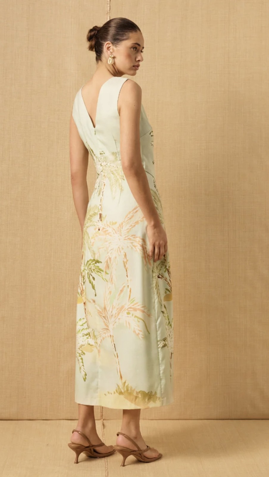 This Midi Dress has an exclusive handcrafted print designed in Australia. Its palm tree design is perfect for those beach parties or weddings as a guest matched with that perfect strappy heel.