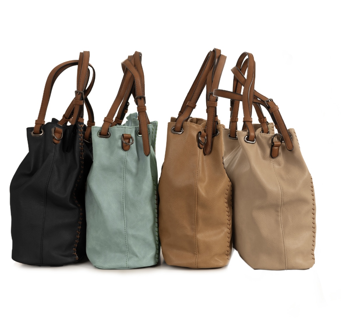 Non-leather look fabric with 3 lines of hand stitch down front.