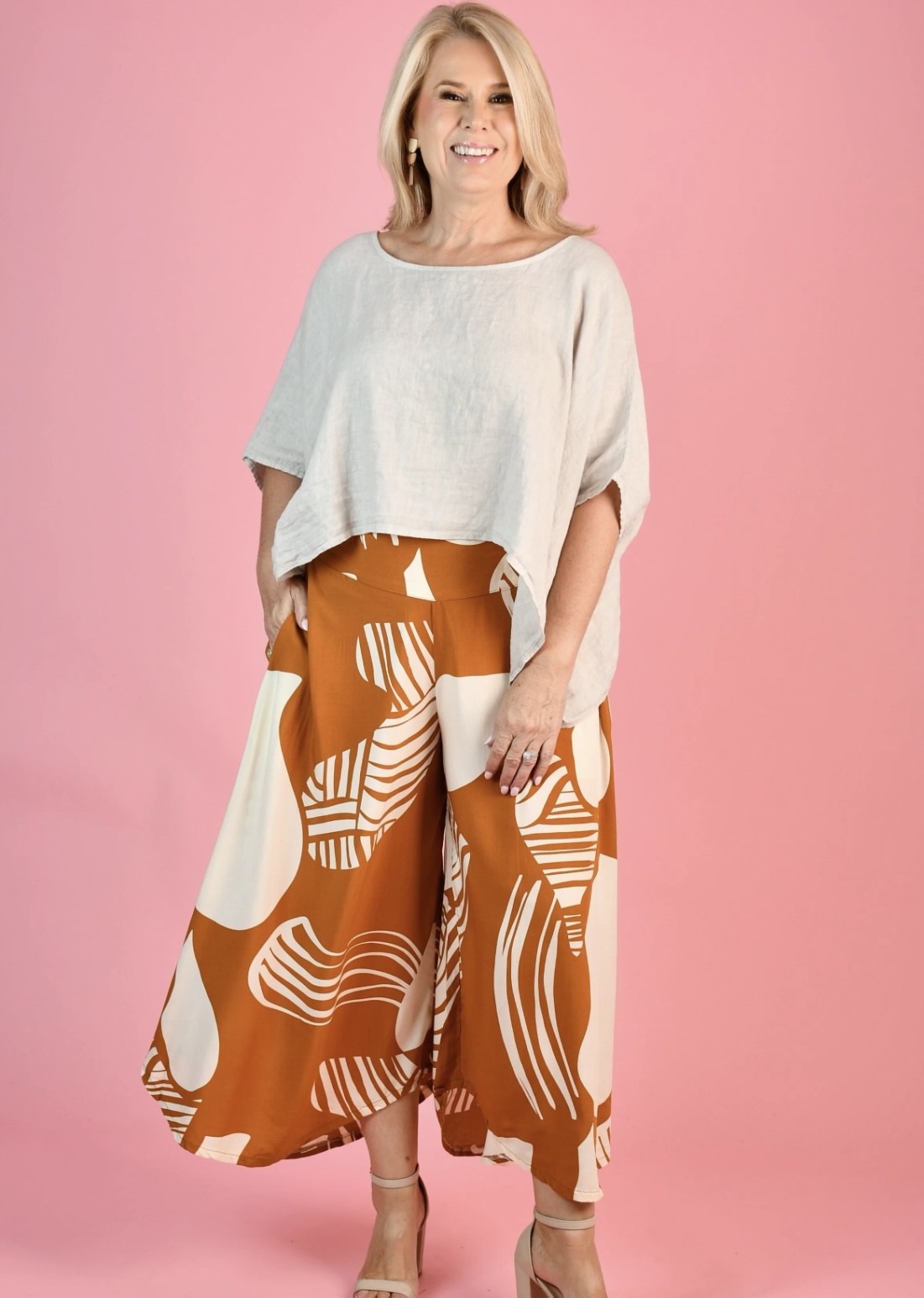 Sydney Wide Leg Pant – Abstract Tan/Cream